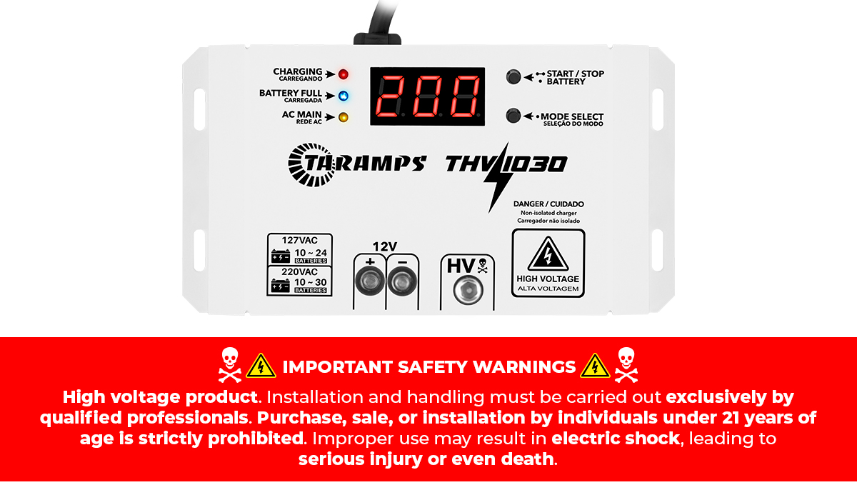The THV 1030 Charger was developed to recharge battery banks connected in series, with a capacity for 10 to 30 batteries.