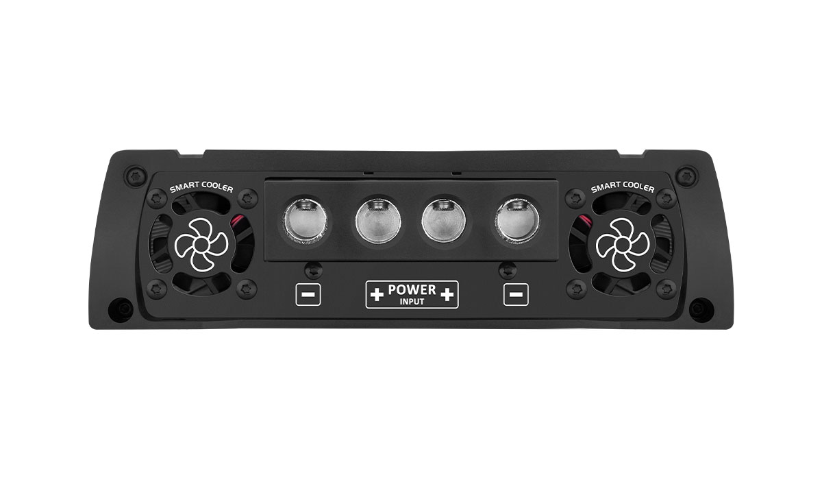 Built to handle demanding conditions, it features dual power connectors supporting up to 2/0 AWG cables, 7 AWG speaker outputs, and a durable aluminum chassis. The dual Smart Cooler system ensures reliable thermal management during intense sessions.