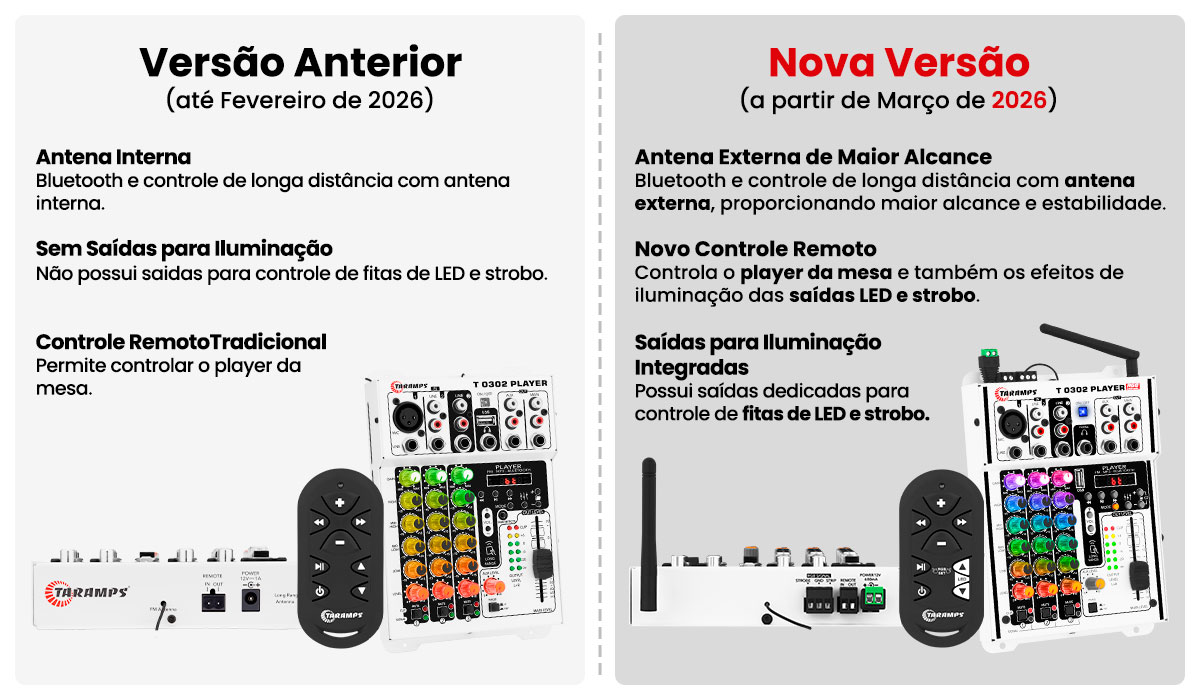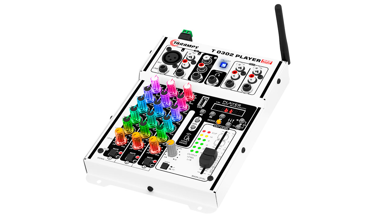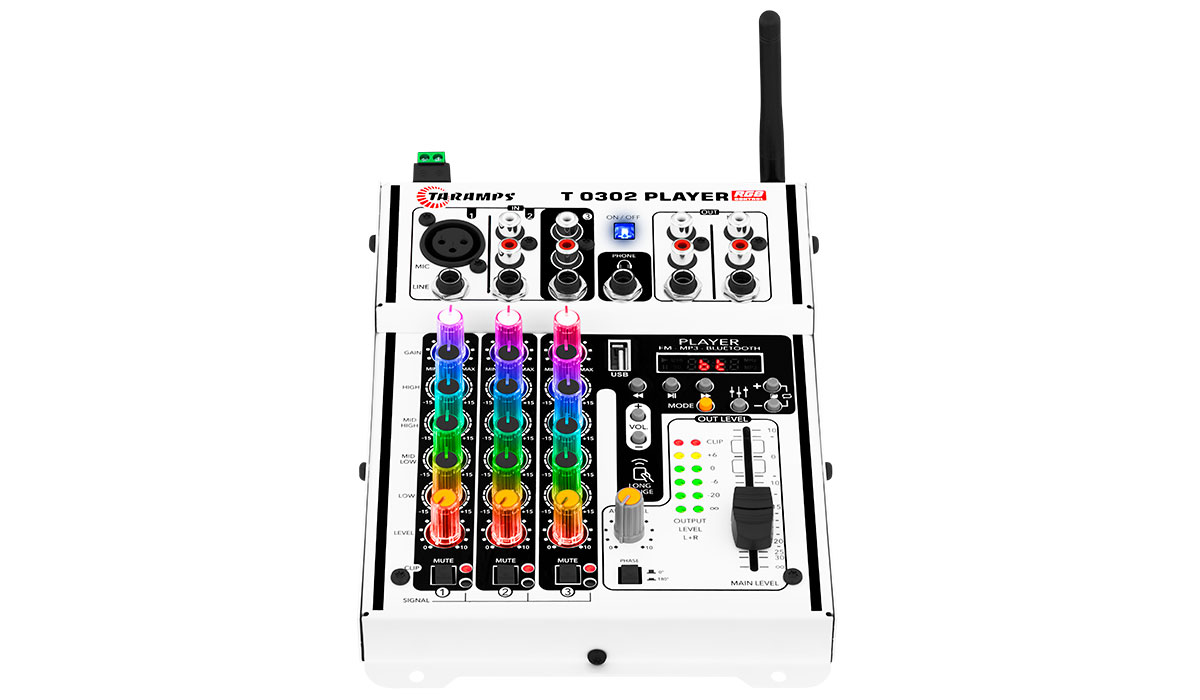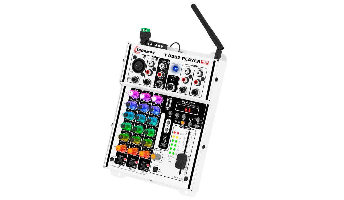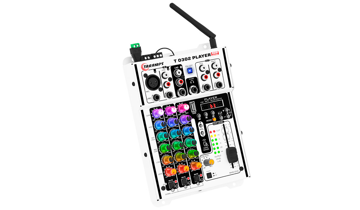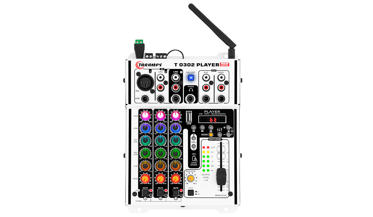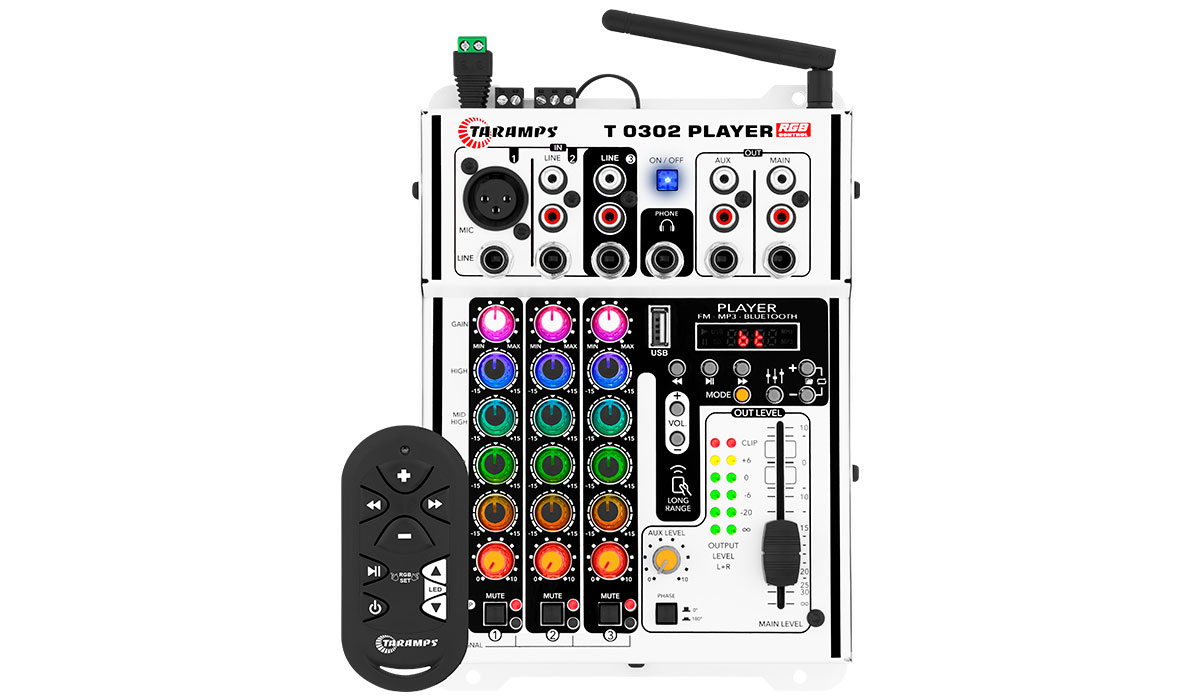 A T 0302 PLAYER MULTICOLOR RGB CONTROL conta ainda com player integrado com Bluetooth, USB e rádio FM, além de controle remoto, oferecendo praticidade total no dia a dia. O player aceita pendrive de até 64 GB, com arquivos MP3 e WMA, com taxa de bits de até 320 kbps (alta qualidade).
